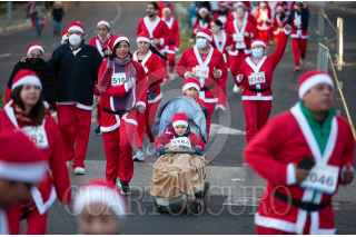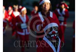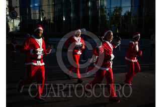 CIUDAD DE MÉXICO, 15DICIEMBRE2024.- La carrera The Santa run salió en punto de las 7 de la mañana en Santa Fe para recorrer en familia vestidos de Santa Claus el parque la Mexicana con una edición de 10 y 5 kilómetros. FOTO: ANDREA MURCIA /CUARTOSCURO.COM