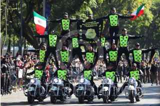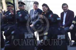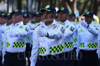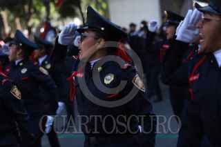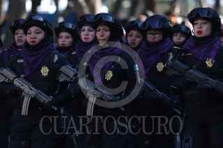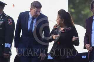 CIUDAD DE MÉXICO, 15DICIEMBRE2024.- La jefa de Gobierno, Clara Brugada y el secretario de Seguridad Ciudadana, Pablo Vázquez, dialogan durante el paso del desfile por el Día del Policía. FOTO: DANIEL AUGUSTO/ CUARTOSCURO.COM