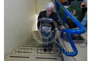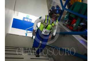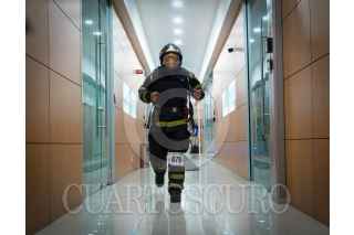 CIUDAD DE MÉXICO, 15DICIEMBRE2024.- Escuadrón de rescate y emergencias, participan en la edición 2024 de la "Carrera Vertical" que se realiza en el World Trade Center; Los participantes subieron 42 pisos que equivalen a 868 escaleras. FOTO: MAGDALENA MONTIEL/CUARTOSCURO.COM