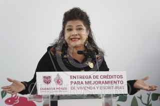 CIUDAD DE MÉXICO, 15DICIEMBRE2024.- Clara Brugada, jefa de Gobierno, durante su participación en la entrega de créditos de mejoramiento de Viviuenda y Escrituras, realizada en la Plaza Tlaxcoaque, en el Centro Histórico. FOTO: GRACIELA LÓPEZ /CUARTOSCURO.COM