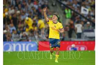 GUADALUPE, NUEVO LEÓN, 15DICIEMBRE024.- Richard Sánchez del América, festeja el gol ante los Rayados del Monterrey en el estadio BBVA, partido de vuelta de la final de la Apertura 2024. Marcador Global medio tiempo: Monterrey: 1 - América: 3. FOTO: GABRIELA PÉREZ MONTIEL / CUARTOSCURO.COM