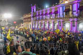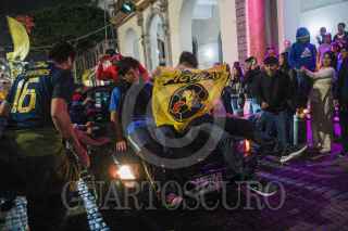 XALAPA, VERACRUZ, 16DICIEMBRE2024.- Aficionados se reunieron a celebrar el tricampeonato de las Águilas del América en la Liga MX del fútbol mexicano, en la Plaza Lerdo de capital veracruzana. FOTO: YERANIA ROLÓN/CUARTOSCURO.COM