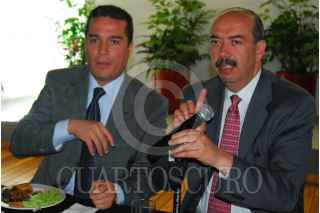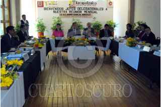 MÉXICO, D.F., 25SEPTIEMBRE2007.- Gilberto Ensastiga, Delegado de Tlahuac y Horacio Martínez, Delegado de Iztapalapa, durante la reunion mensual de jefes delegaciones, en el salon cervantino de la casa de cultura en Atzcapotzalco. FOTO: CLAUDIA ARECHIGA/CUARTOSCURO.COM