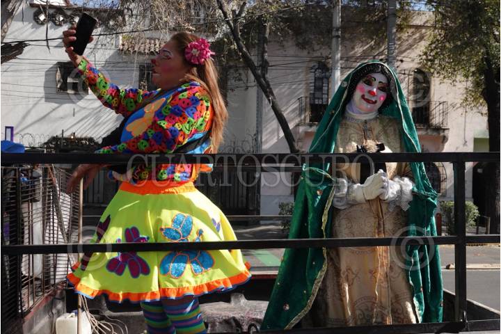 CIUDAD DE MÉXICO, 16DICIEMBRE2024.- Integrantes del Grupo Metropolitano de Payasos realizaron la XXXII Peregrinación de Payasos que dio inicio en la Glorieta de Peralvillo y terminó en la Basílica de Guadalupe. FOTO: GRACIELA LÓPEZ/CUARTOSCURO.COM