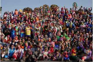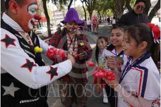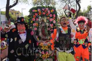 CIUDAD DE MÉXICO, 16DICIEMBRE2024.- Integrantes del Grupo Metropolitano de Payasos realizaron la XXXII Peregrinación de Payasos que dio inicio en la Glorieta de Peralvillo y terminó en la Basílica de Guadalupe. FOTO: GRACIELA LÓPEZ/CUARTOSCURO.COM
