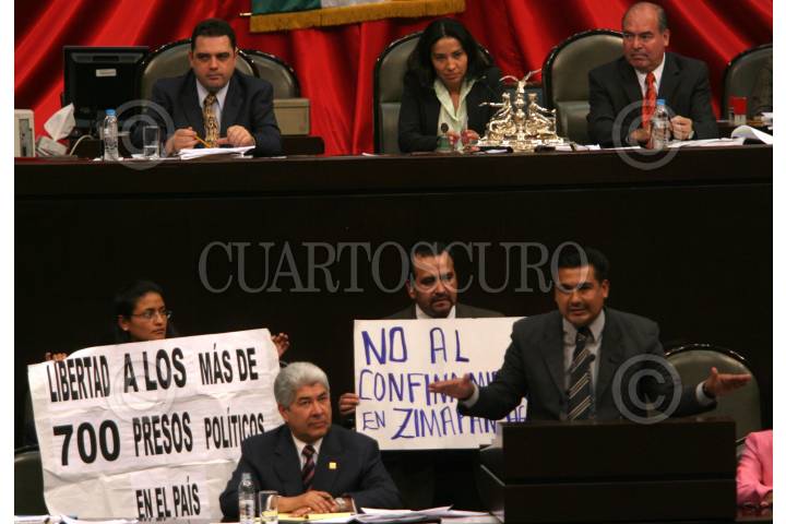 MÉXICO, D.F., 25SEPTIEMBRE2007.-Pobladores de hidalgo afectados por la construcción de un basurero tóxico se manifestaron cuando el Francisco Ramírez Acuña, salió del recinto legislativo en donde comparecio por la glosa del I Informe de Gobierno. FOTO: MOISÉS PABLO/CUARTOSCURO.COM