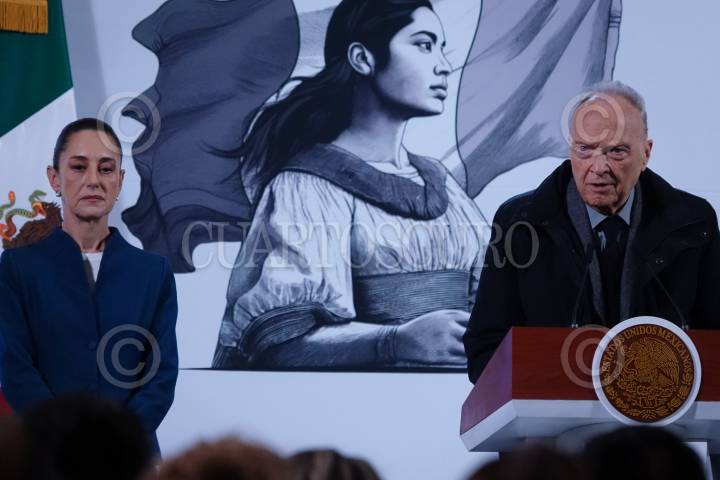 CIUDAD DE MÉXICO, 17DICIEMBRE2024.- Claudia Sheinbaum Pardo, presidenta de México, y Alejandro Gertz Manero, Fiscal General de la República, durante la conferencia “Mañanera del Pueblo” en la que se presentó el informe quincenal en materia de seguridad. FOTO: GALO CAÑAS/CUARTOSCURO.COM