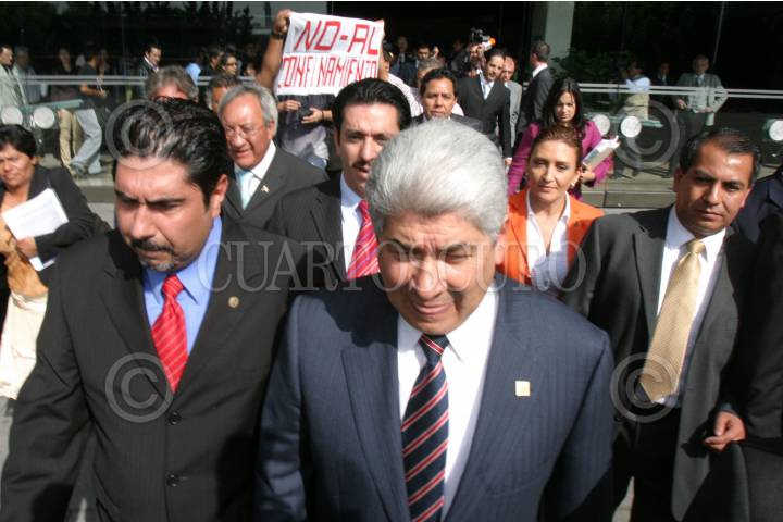 MÉXICO, D.F., 25SEPTIEMBRE2007.-Pobladores de hidalgo afectados por la construcción de un basurero tóxico se manifestaron cuando el Francisco Ramírez Acuña, salió del recinto legislativo en donde comparecio por la glosa del I Informe de Gobierno. FOTO: MOISÉS PABLO/CUARTOSCURO.COM