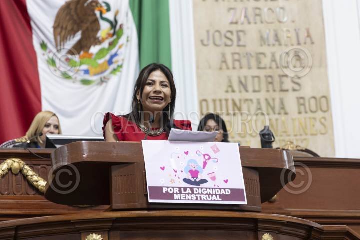 CIUDAD DE MÉXICO, 17DICIEMBRE2024.- Miriam Valeria Cruz Flores, diputada local de Morena, durante la presentación de la iniciativa "Por la dignidad menstrual", en la sesión del Congreso de la Ciudad de México. La iniciativa tiene por objetivo reconocer el derecho a la menstruación digna, al establecer que diversas instancias públicas tengan la responsabilidad de reconocer, garantizar y salvaguardar a todas las mujeres menstruantes, a través de acciones afirmativas, que informen y erradiquen el estereotipo de que la menstruación es un tema tabú. FOTO: MOISÉS PABLO/CUARTOSCURO.COM
