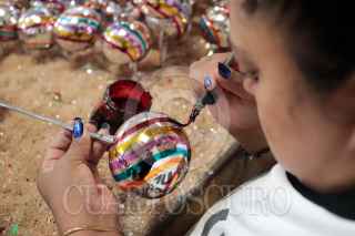 CHIGNAHUAPAN, PUEBLA, 17DICIEMBRE2024.- Como cada año, familias de Chignahuapan llevan a cabo el proceso de la elaboración de esferas de vidrio soplado de manera artesanal. Muchas de estas piezas son únicas y originales ya que las hacen por temporada, estos adornos son los encargados de decorar miles de hogares durante esta temporada navideña. FOTO: MIREYA NOVO/CUARTOSCURO.COM