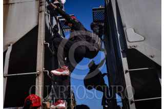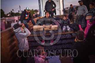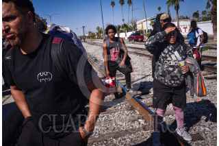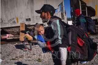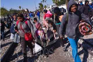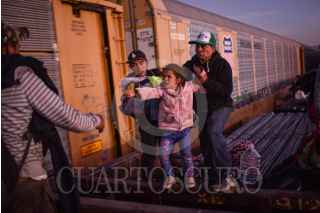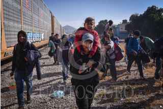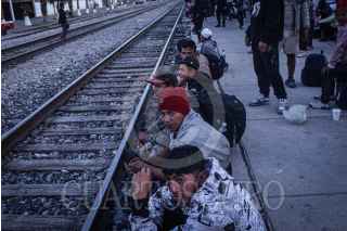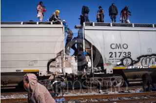 GÓMEZ PALACIOS, DURANGO, 17DICIEMBRE2024.- Después de días esperando el tren, durmiendo a un costado de las vías ferroviarias, un grupo de alrededor de 200 migrantes, provenientes en su mayoría de Venezuela, se montaron en los vagones para continuar su camino al norte del continente. FOTO: PEDRO ANZA /CUARTOSCURO.COM