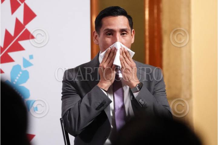 CIUDAD DE MÉXICO, 18DICIEMBRE2024.- Miguel Ángel Elorza Vázquez, coordinador de INFODEMIA, durante la conferencia del pueblo en el Salón Tesorería en Palacio Nacional. FOTO: GRACIELA LÓPEZ/CUARTOSCURO.COM