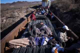 CAMARGO, CHIHUAHUA , 18DICIEMBRE2024.- Soportando temperaturas bajas y enfrentándose a todo tipo de adversidades en el camino, migrantes, en su mayoría provenientes de Venezuela, viajan a bordo de trenes con dirección al norte del continente. FOTO: PEDRO ANZA /CUARTOSCURO.COM