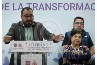 CIUDAD DE MÉXICO, 18DICIEMBRE2024.- Raúl Basulto, secretario de Obras y Servicios de la capital, durante el anuncio de lo que será la construcción de 17 Utopías el próximo año. Brugada Molina destacó que este tipo de proyectos reducen la brecha de oportunidades culturales y de esparcimiento para la población que habita la capital del país. FOTO: GALO CAÑAS/CUARTOSCURO.COM