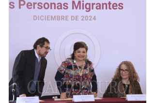 CIUDAD DE MÉXICO, 18DICIEMBRE2024.- Clara Brugada, jefa de gobierno de la Ciudad de México, en compañía de César Cravioto, secretario de Gobierno, y Araceli Damián, secretaria de Bienestar e Igualdad Social de la Ciudad de México, encabezaron el encuentro con población migrante en Centro de Atención e Integración Social (CAIS) Vasco de Quiroga en la colonia Morelos. Lo anterior, con motivo de la conmemoración del Día Internacional del Migrante. FOTO: CUARTOSCURO.COM