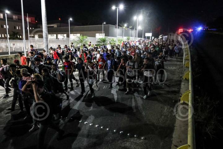 TAPACHULA, CHIAPAS, 18DICIEMBRE2024.- Una caravana migrante conformada por 1500 personas migrantes de diferentes nacionalidades salen de Tapachula rumbo a la frontera norte. La mayoría de estas personas son mujeres y niños que buscan avanzar por la noche para no sufrir las altas temperatura. FOTO: DAMIÁN SÁNCHEZ/CUARTOSCURO.COM