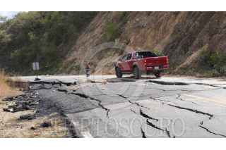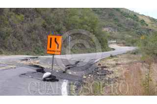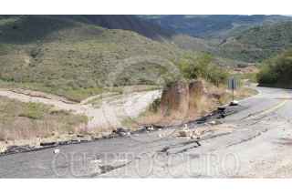 SANTA CATARINA IXTEPEJÍ, OAXACA, 18DICIEMBRE2024.- Una falla geológica que cruza por la carretera Oaxaca-Tuxtepec ocasionó la interrupción del tránsito vehicular, pues parte de la cinta asfáltica se va hundiendo y corre el riesgo de colapsar un tramo de la carretera, derivado de las intensas lluvias provocadas por la tormenta tropical Nadine el pasado mes de octubre. Pese a los esfuerzos de los pobladores y las autoridades algunos automovilistas continúan circulando en la falla geológica, lo que los pone en riesgo ante el constante movimiento de la falla. Las autoridades viales han habilitado un paso alterno a esta vía que conecta Oaxaca con la Sierra Juárez y Tuxtepec, sin embargo, esta vía no permite el tránsito de camiones pesados. FOTO: NEMESIO MÉNDEZ/CUARTOSCURO.COM