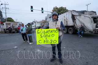 ECATEPEC, ESTADO DE MÉXICO, 18DICIEMBRE2024.- Trabajadores del municipio de Ecatepec bloquearon por varias horas la Vía Morelos ya que señalan que les deben pagos de prestaciones y bonos de navidad piden sus bonos de navidad y pagos de prestaciones. Los inconformes atravesaron unidades recolectoras de basura en la mencionada vialidad, así como, la avenida López Portillo y López Mateos, lo que generó un enorme caos vial. FOTO: GALO CAÑAS/CUARTOSCURO.COM
