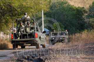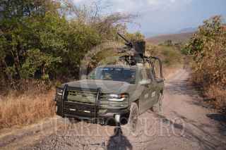 BUENAVISTA, MICHOACÁN, 18DICIEMBRE2024.- Dos soldados adscritos a la 43 Zona Militar murieron anoche tras la explosión de una mina terrestre, de fabricación casera, en un supuesto campo minado ubicado en los límites de los municipios de Buenavista Tomatlán y Apatzingán, en la región de Tierra Caliente. De acuerdo con una fuente de la Guardia Civil, Policía Estatal de Michoacán, la nueva explosión ocurrió anoche en un camino de terracería de la comunidad Paredes del Ahogado, en Buenavista Tomatlán, donde los militares buscaban células de sicarios. FOTO: JUAN JOSÉ ESTRADA SERAFÍN/ CUARTOSCURO.COM
