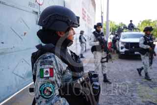 BUENAVISTA, MICHOACÁN, 18DICIEMBRE2024.- Elementos de la Guardia Nacional custodian la Semefo en donde están los cuerpos de los dos soldados que murieron tras la explosión de una mina terrestre, de fabricación casera, en un supuesto campo minado ubicado en los límites de los municipios de Buenavista Tomatlán y Apatzingán, en la región de Tierra Caliente. FOTO: JUAN JOSÉ ESTRADA SERAFÍN/ CUARTOSCURO.COM
