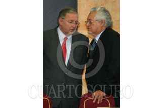 MÉXICO, D.F. 26SEPTIEMBRE2007.- El presidente Felipe Calderón anunció que por el momento no se aumentaràn los precios de la gasolina, el gas y las tarifas eléctricas en su gobierno. Jorge Gutierrez Vera, director de Lus y Fuerza del Centro y Jesús Reyes Heroles, director de PEMEX durante la conferencia. FOTO: PAOLA HIDALGO/CUARTOSCURO.COM
