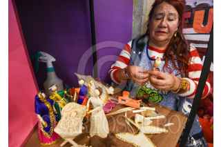 TOLUCA, ESTADO DE MÉXICO, 19DICIEMBRE2024.- El nacimiento navideño es un elemento importante durante los festejos decembrinos, elaborados de diversos materiales que van desde la porcelana, madera, resina, yeso, fibra de vidrio, barro entre otros, Rosario Torres originaria de Metepec tiene 25 años dedicándose a la elaboración de nacimientos de un materia muy particular, el totomoxtle, que en náhuatl significa “hoja seca”, las hojas de maíz que comúnmente conocemos se utilizan para la elaboración de tamales también sirven para elaborar artesanías como los nacimientos. En el mes de agosto inicia el trabajo de estas figuras que son de 3, 6 y 15 cm, constan de 11 figuras, María, José, María, el Niño Dios, el Ángel, los tres Reyes Magos, el pastor y tres animales, para elaborar cada nacimiento se tarda aproximadamente 3 o 4 días, su proceso inicia al escoger las hojas de maíz, mojarlas para poder manipularlas, si llevan colores se pintan con pintura vegetal o anilina, se empieza a cortar las piezas de cada figura y se le da forma a cada una de ella, también se realizan moños, que sirven para adornar los árboles de navidad o para personalizar regalos, esto como una forma de dejar de consumir plásticos o moños comerciales, no desperdicia nada del totomoxtle todo es utilizado. Rosario invista a la gente a consumir artesanías ya que en cada una de ellas ponen su ingenio y corazón así como parte de su esencia. FOTO: CRISANTA ESPINOSA AGUILAR /CUARTOSCURO.COM