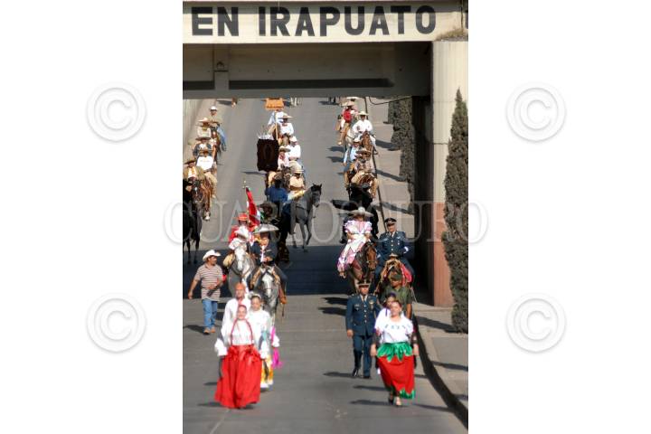 IRAPUATO, GUANAJUATO., 25SEPTIEMBRE2007.- El General de la 16 zona militar, Mauricio Sánchez Bravo acompañado del Presidente municipal, Ing. Mario Turrent Anton, en la recepción por la cabalgata de la ruta de independencia nacional. FOTO: JOSE LUIS CERVANTES/CUARTOSCURO.COM