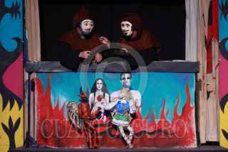 CIUDAD DE MÉXICO, 19DICIEMBRE2024. Inicio de temporada de la puesta en escena “Tradicional Pastorela Mexicana”, que se presenta en el Claustro del Instituto Cultural Helénico hasta el 29 de diciembre. Un par de marionetas inician el espectáculo. FOTO: EDGAR NEGRETE LIRA/CUARTOSCURO.COM