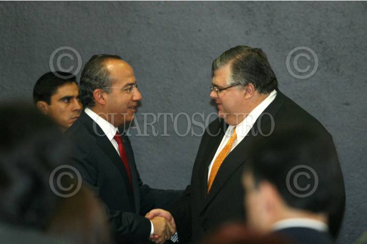MEXICO D.F. A 26 DE SEPTIEMBRE DEL 2007.- El presidente de México, Lic. Felipe Calderón Hinojosa, durante la conferencia que tuvo lugar en el salón Adolfo López Mateos de la residencia oficial. FOTO ALFREDO GUERRERO/CUARTOSCURO.COM