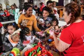 CIUDAD DE MÉXICO, 21DICIEMBRE2024.- Integrantes de los colectivos "Llaven Nü", "Riendo Juntes", y Psique Ando AC" organizaron una posada navideña en la ofrecieron un "show de payasos", regalaron juguetes, ropa y alimentos para los niños y familias migrantes que se encuentran en las inmediaciones de la Parroquia de la Santa Cruz y Nuestra Señora de la Soledad. FOTO: MARIO JASSO/CUARTOSCURO.COM