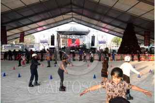 CIUDAD DE MÉXICO, 21DICIEMBRE2024.- Jóvenes y niños acudieron a disfrutar de la pista de hielo instalada en la Macroplaza de la alcaldía Iztapalapa. FOTO: GRACIELA LÓPEZ/CUARTOSCURO.COM
