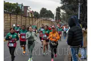 METEPEC, ESTADO DE MÉXICO, 22DICIEMBRE2024.- Cientos de corredores participaron en el medio maratón Santa Claus que se realizó en el pueblo mágico de Metepec, con gorritos navideños recorrieron 5, 10 y 21 km previo a la celebración de Navidad. FOTO: CRISANTA ESPINOSA AGUILAR /CUARTOSCURO.COM