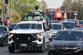 CIUDAD DE MÉXICO, 22DICIEMBRE2024.- Una camioneta con integrantes de la guardia nacional transita sobre avenida paseo de la reforma. FOTO: MARIO JASSO/CUARTOSCURO.COM