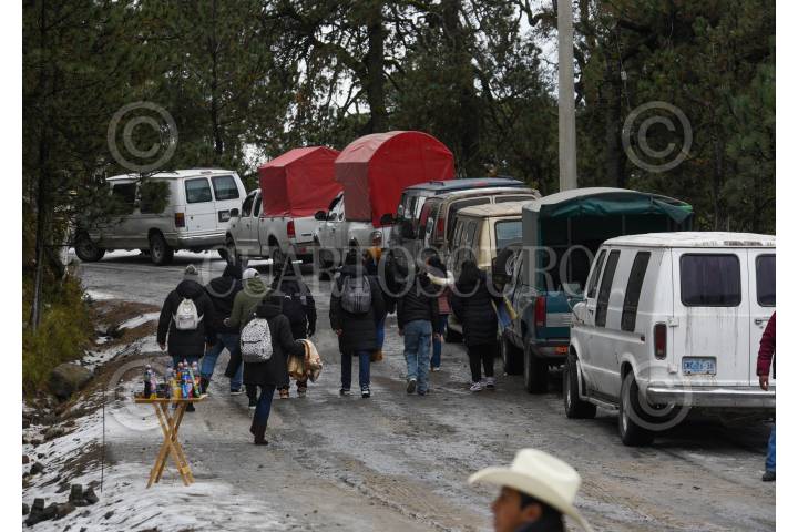 ZINACANTEPEC, ESTADO DE MÉXICO, 23DICIEMBRE2024.- Turistas de distintos puntos de la entidad mexiquense y de otros estados acudieron al Nevado de Toluca para disfrutar del paisaje nevado, algunos pudieron disfrutar de la nieve en el Parque de los Venados y otros se quedaron en la entrada principal y tuvieron que caminar. La Secretaría de Medio Ambiente estatal y CONANP emitieron una advertencia ante el mal tiempo e informaron que se encuentra cerrado el acceso al Volcán Xinantécatl hasta nuevo aviso. FOTO: CRISANTA ESPINOSA AGUILAR /CUARTOSCURO.COM
