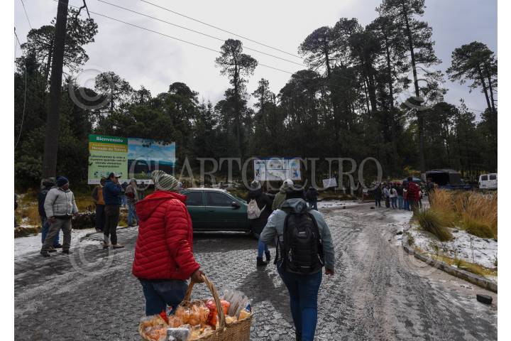 ZINACANTEPEC, ESTADO DE MÉXICO, 23DICIEMBRE2024.- Turistas de distintos puntos de la entidad mexiquense y de otros estados acudieron al Nevado de Toluca para disfrutar del paisaje nevado, algunos pudieron disfrutar de la nieve en el Parque de los Venados y otros se quedaron en la entrada principal y tuvieron que caminar. La Secretaría de Medio Ambiente estatal y CONANP emitieron una advertencia ante el mal tiempo e informaron que se encuentra cerrado el acceso al Volcán Xinantécatl hasta nuevo aviso. FOTO: CRISANTA ESPINOSA AGUILAR /CUARTOSCURO.COM