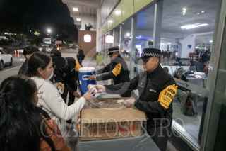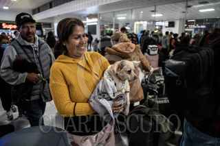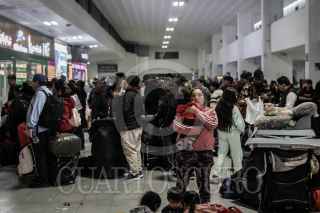 TIJUANA, BAJA CALIFORNIA, 22DIC2024.-A unos días del día de Navidad, la central camionera de Tijuana luce abarrotada por personas que intentan llegar con sus seres queridos para pasar las fechas decembrina. Cómo parte del apoyo, agentes de la Guardia Nacional, realizan rondines de vigilancia y regalaron café y pan a las personas que se encontraban esperando su camión durante la noche fría del fin de semana. Edith, quien va a viajar hacia la Ciudad de México, comentó que muchos de los camiones se encontraban retardados, por lo que las personas estaban desesperadas y el café y el pan que los agentes les regalaron, les ayudaron a pasar mejor la espera de hasta cuatro horas. “Se me hizo bonito detalle que la Guardia Nacional pusiera café, se ve que están haciendo su labor, sirve para la espera”, comentó, agregando que espera por el retraso alcanzar a llegar llegar a medio día de navidad. Por su parte Adolfo, quien iba a viajar a Hermosillo, expresó que él pasaría toda la noche en la Central, ya que le habían comentado que su camión saldría hasta la mañana. “La intención es la proximidad social, lo hacemos con toda la fe del mundo y lo que tratamos es de fortalecer la relación con la sociedad, es un gesto bonito y vamos a seguir implementando esta estrategia”, comentó Brandon Daniel Barrera, agente de la Guardia Nacional. Agregando que su deseo es que la población deje de tenerle miedo a las autoridades y se les acerquen para que les informen sobre la situación de la ciudad. OMAR MARTÍNEZ/ CUARTOSCURO.COM