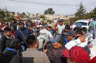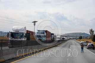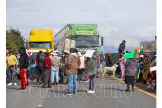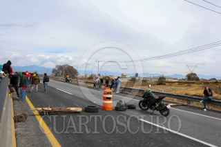 OTZOLOTEPEC, ESTADO DE MÉXICO, 23DICIEMBRE2024.- Habitantes de Villa Seca, municipio de Otzolotepec bloquearon en ambos sentidos el libramiento Ruta de la Independencia Bicentenario Lerma-Valle de Bravo exigiendo se restablezca el servicio de agua, denuncian que llevan dos meses sin el servio, el pozo que los abastece dejó de operar al realizarte un corte de luz, al lugar llegaron elementos de la GN para entablar un diálogo pero los habitantes amenazaron que de no obtener una respuesta favorable continuarán con el bloqueo. FOTO: CRISANTA ESPINOSA AGUILAR /CUARTOSCURO.COM