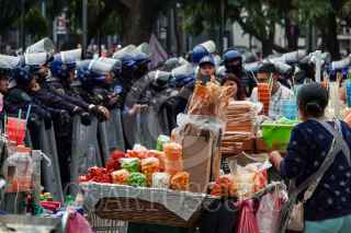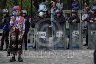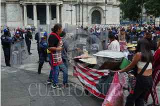 CIUDAD DE MÉXICO, 23DICIEMBRE2024.- Tras breves momentos de tensión entre policías y vendedores ambulantes de la Alameda Central, los uniformados lograron replegar a las y los comerciantes hacia el monumento a Beethoven a un costado del Palacio de Bellas Artes. Cabe mencionar que las autoridades de la Ciudad de México emplearon en días pasado el operativo “Orden y Seguridad” a fin de liberar la explanada de Bellas Artes del comercio informal. Las y los inconformes denunciaron que las autoridades no respetaron los acuerdos establecidos y continúan violentando los derechos de quienes solamente quieren trabajar. FOTO: GALO CAÑAS/CUARTOSCURO.COM