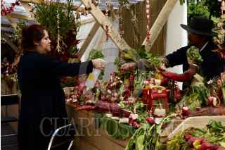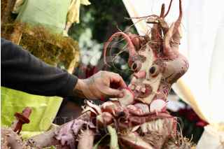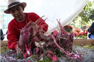 OAXACA DE JUÁREZ, OAXACA, 23DICIEMBRE2024.- Más de 30 expositores participaron en dos categorías durante la 127 edición de la tradicional Noche de Rábanos que se celebra este día en el zócalo de la capital de Oaxaca. Las figuras talladas en tubérculos de gran tamaño nacen de la imaginación de los participantes para representar escenas tradicionales como calendas, festividades patronales o seres mitológicos. La Noche de Rábanos que se celebra cada 23 de diciembre, inició con la verbena de “Navidad” en donde hortelanos y floricultores elaborarán figuras para llamar la atención de los clientes a consumir sus productos. FOTO: CAROLINA JIMÉNEZ/CUARTOSCURO.COM