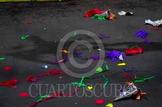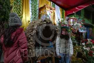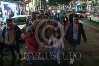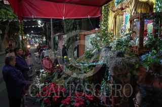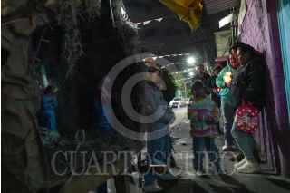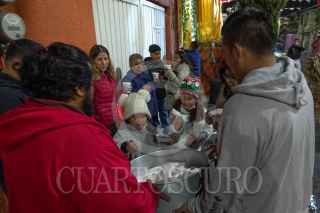 CIUDAD DE MÉXICO, 23DICIEMBRE2024.- La posada está por empezar. Los vecinos, abrigados con suéteres y chamarras para mitigar el frío de las noches decembrinas, se reunen con algunas velas prendidas frente a los “cerritos”, altares que simulan el cerro del Tepeyac, adornados con flores arriba de los cuales está colocada la figura de la Virgen de Guadalupe, a quien los congregados rezan antes de iniciar el recorrido. Los niños soplan los silbatos, es momento de salir. Los vecinos parten junto con Maricela y Adriana Pérez, anfitriones del festejo que desde hace más de diez años viven en la colonia Barrio San Ignacio, en Iztapalapa. Los más pequeños cargan a los peregrinos y la multitud inicia el recorrido entre mototaxis, bicicletas y carros, por las calles de la alcaldía. Una vez terminado el recorrido, después de entonar al unísono el canto tradicional "ora pro nobis" y de haber hecho un último rezo frente al “cerrito” de la calle, la familia Pérez, que albergó su octava posada consecutiva, se encarga de repartir tortas de jamón y ponche a los asistentes. Ya con menos frío y las energías renovadas tras la ingesta de alimentos, los pequeños y los no tan pequeños hacen fila para partir las piñatas, que fueron donadas por la comunidad circundante. Mientras los asistentes forman un semicírculo, el eco del “dale, dale dale, no pierdas el tino” resuena en la calle General Anaya. La piñata comienza a romperse, los dulces caen al suelo junto con una que otra fruta. Cuando el último dulce de la sexta piñata es resguardado por algún niño empecinado en recolectar hasta la más diminuta golosina, la posada termina. Mientras caminan a casa los pequeños presumen el botín momentáneo que tendrán que reabastecer con otra piñata en la siguiente posada. FOTO: ROGELIO MORALES /CUARTOSCURO.COM