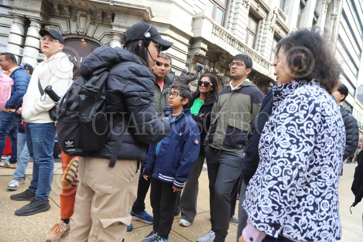 CIUDAD DE MÉXICO, 24DICIEMBRE2024. Una guía de turistas explica a paseantes extranjeros como se celebra la navidad en la Ciudad de México, en vísperas de navidad. FOTO: EDGAR NEGRETE LIRA/CUARTOSCURO.COM