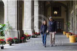 CIUDAD DE MÉXICO, 24DICIEMBRE2024.- Claudia Sheinbaum, presidenta de México, en compañía de su esposo Jesús María Tarriba enviaron un mensaje de Navidad desde los pasillos de Palacio Nacional. FOTO: PRESIDENCIA/CUARTOSCURO.COM