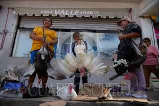 CAMPECHE, CAMPECHE, 24DICIEMBRE2024.- Vendedoras de pavo indio ofrecen los ejemplares en el mercado Pedro Sainz de Baranda como platillo tradicional para la cena de Nochebuena. Los precios oscilan entre los mil pesos y mil 500 pesos por ejemplar. Recientemente se informó que los mexicanos exportan mas del 90?l pavo que se consume en las f Fiestas Decembrinas. FOTO: MICHAEL BALAM/CUARTOSCURO.COM