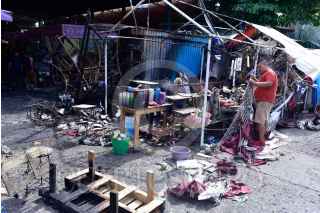 ACAPULCO, GUERRERO, 25DICIEMBRE2024.- Esta madrugada un incendio consumió 31 locales semifijos en el Mercado Central de Acapulco, fueron bomberos de Protección Civil del municipio los que se encargaron de sofocar el incendio. Hasta el momento, las autoridades no han dando a conocer cual fue la causa del siniestro, sin embargo esta fue la segunda ocasión que el inmueble se incendió en el 2024. FOTO: CARLOS CARBAJAL/CUARTOSCURO.COM