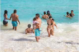 CANCÚN QUINTANA ROO, 25DICIEMBRE2024.- Cancunenses y turistas abarrotaron la Playa Delfines durante este día de Navidad para disfrutar de este día de asueto. FOTO: ELIZABETH RUIZ/CUARTOSCURO.COM