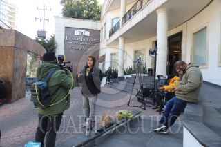 CIUDAD DE MÉXICO, 26DICIEMBRE2024. Medios de comunicación se encuentran a las afueras de la funeraria donde se encuentran los restos de la cantante conocida como Dulce, fallecida este 25 de diciembre tras sufrir complicaciones derivadas del cáncer de pulmón que padecía. FOTO: EDGAR NEGRETE LIRA/CUARTOSCURO.COM