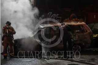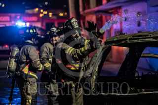 TIJUANA, BAJA CALIFORNIA, 26DIC2024.-Elementos del cuerpo de bomberos rescataron a un hombre que sufrió quemaduras de 2do y 3er grado tras el incendio de su automóvil. Los hechos se registraron la noche del este miércoles 25 de diciembre, sobre la avenida General Ramón Arnáiz de la colonia El Soler. Elementos del cuerpo de bomberos arribaron al lugar y encontraron un vehículo en llamas al exterior de unos departamentos, además de un hombre con quemaduras en su rostro, cuello y tórax. Paramédicos de la cruz roja le brindaron los primeros auxilios al hombre lesionado para luego trasladarlo en condición grave hacia un hospital para continuar con su atención médica. El Jefe de Batallón de Bomberos del Sector 1, Noé Cruz mencionó que debido a que el vehículo en llamas se encontraba bloqueando el acceso de los departamentos, una familia integrada por 2 adultos, 1 adulto mayor y 3 menores de edad, se encontraban resguardados en el interior, pero después de la intervención de los bomberos fueron evacuados sin ninguna lesión. Según información extraoficial, tras escuchar un fuerte estallido, vecinos de la zona se acercaron al lugar y al percatarse de que un hombre estaba en llamas, apoyaron sofocando con extintores el fuego qué presentaba el hombre en su cuerpo. OMAR MARTÍNEZ/ CUARTOSCURO.COM