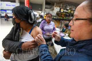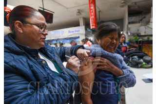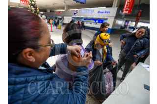 TOLUCA, ESTADO DE MÉXICO, 26DICIEMBRE2024.- En la Terminal de Autobuses de Toluca se aplicaron vacunas contra la Influenza por parte de personal del IMSS, varios de los usuarios aprovecharon para aplicarse su vacuna antes de irse a su destino. FOTO: CRISANTA ESPINOSA AGUILAR /CUARTOSCURO.COM