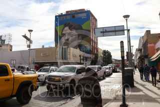 CIUDAD JUÁREZ, CHIHUAHUA, 27 DICIEMBRE 2024.- El Noa Noa, famoso por su historia ligada a Juan Gabriel, ahora funciona como estacionamiento, mientras que el mural del cantante en la avenida Juárez parece ignorado por los automovilistas que hacen fila para cruzar a El Paso, Texas. En esta cotidianidad también se observa la presencia de migrantes que forman parte del paisaje urbano de la frontera. FOTO: GUSTAVO ALBERTO/CUARTOSCURO.COM