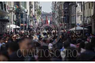 CIUDAD DE MÉXICO, 27DICIEMBRE2024.- Decenas de personas aprovechan las vacaciones de diciembre para visitar el Centro Histórico de la capital abarrotando las calles principales del mismo. FOTO: ANDREA MURCIA /CUARTOSCURO.COM